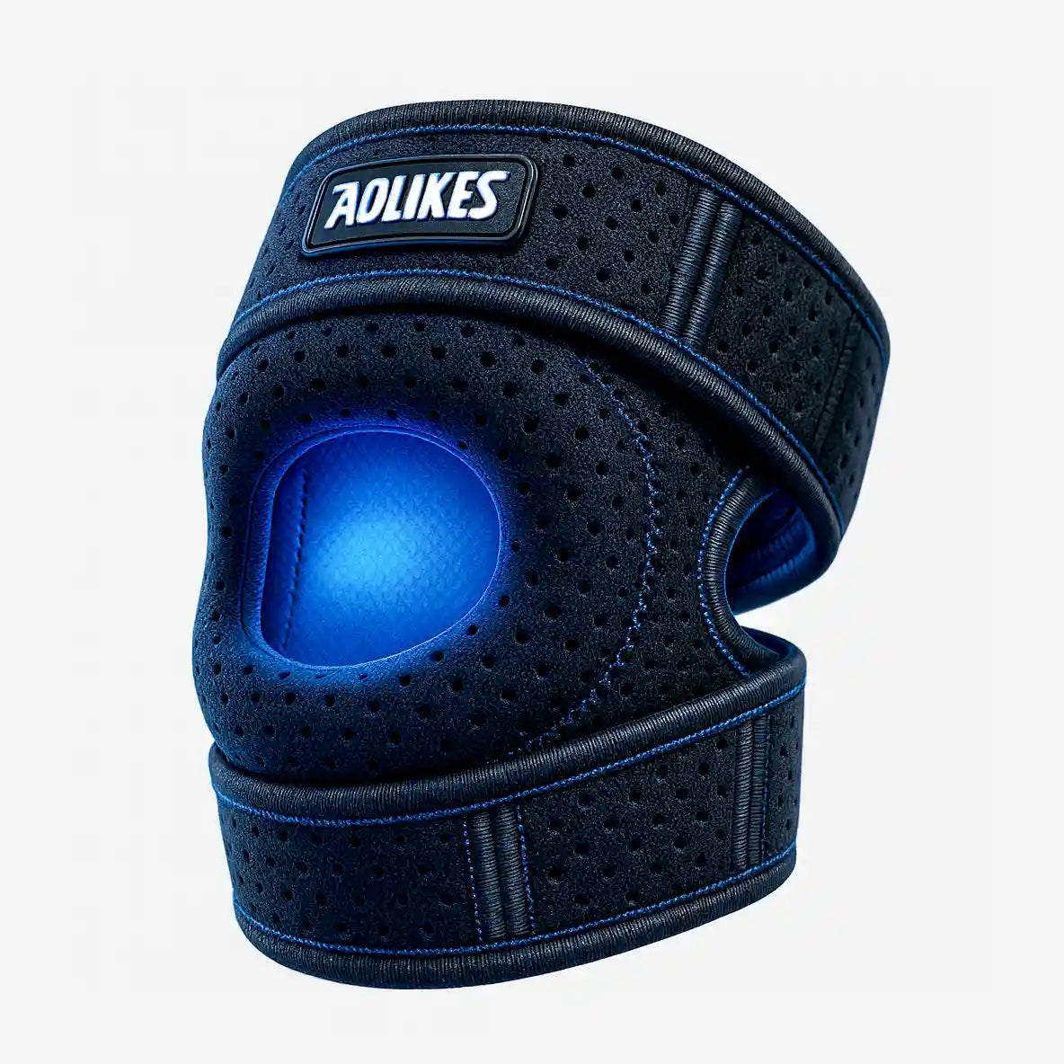 - Matériaux : Néoprène respirant, sangles ajustables avec velcro, coussin de stabilisation rotulienne